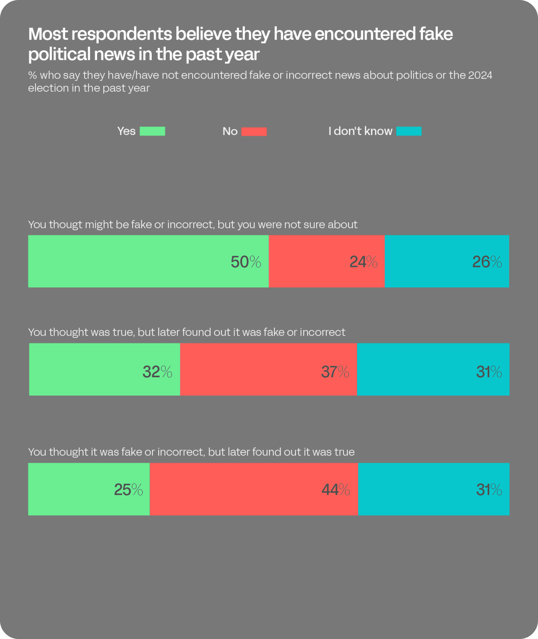 Worries about fake news are not simply a reaction to second-hand reports by the media. Fully half (50%) of American adults say that over the past year they have personally encountered election news they suspect was false or made-up. Nearly a third (32%) of Americans separately report encountering news they initially believed to be true but later discovered was false. One-in-four (25%) say they have had the inverse experience: finding out after-the-fact that news they originally considered false or incorrect was actually true.