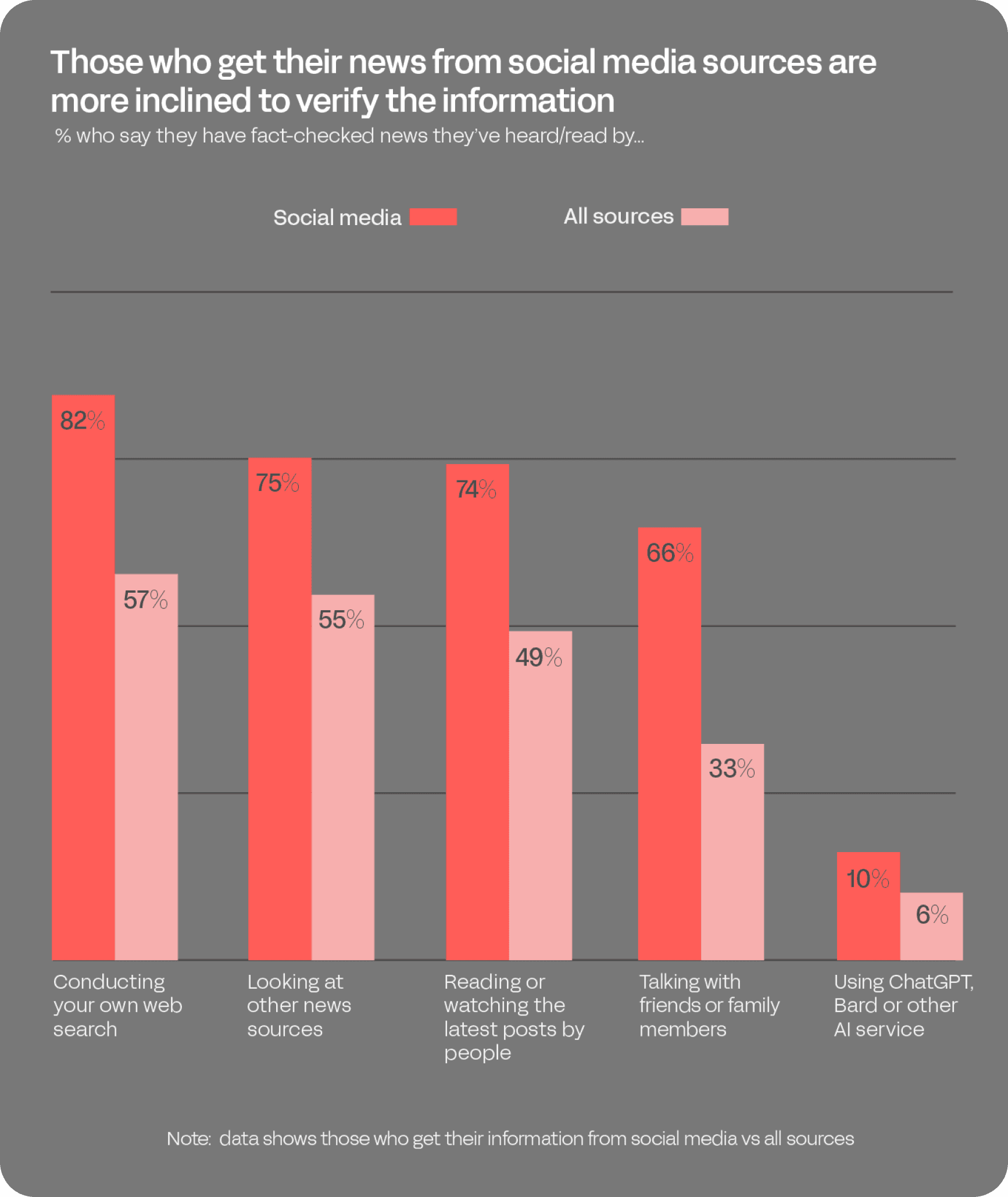 Worried about the veracity of information they encounter, many Americans are checking the facts themselves – most often by consulting additional news sources or conducting web searches. Individuals who rely on social media for political news are the most likely to consult secondary sources to verify information they encounter.