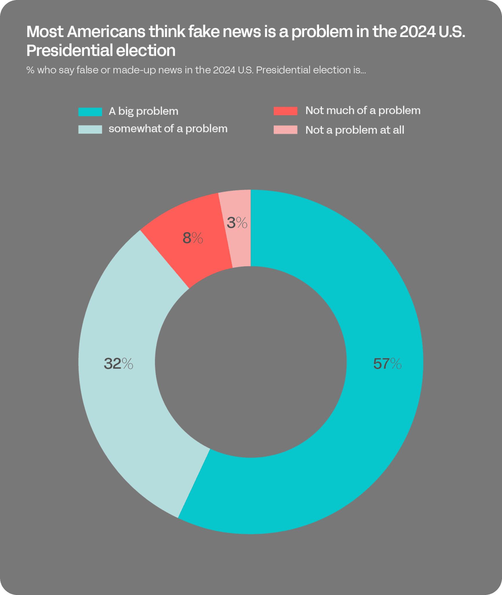 An overwhelming majority (89%) of Americans describe false or made-up news as a problem in the 2024 U.S. Presidential election, with 57% saying it is “a big problem.”